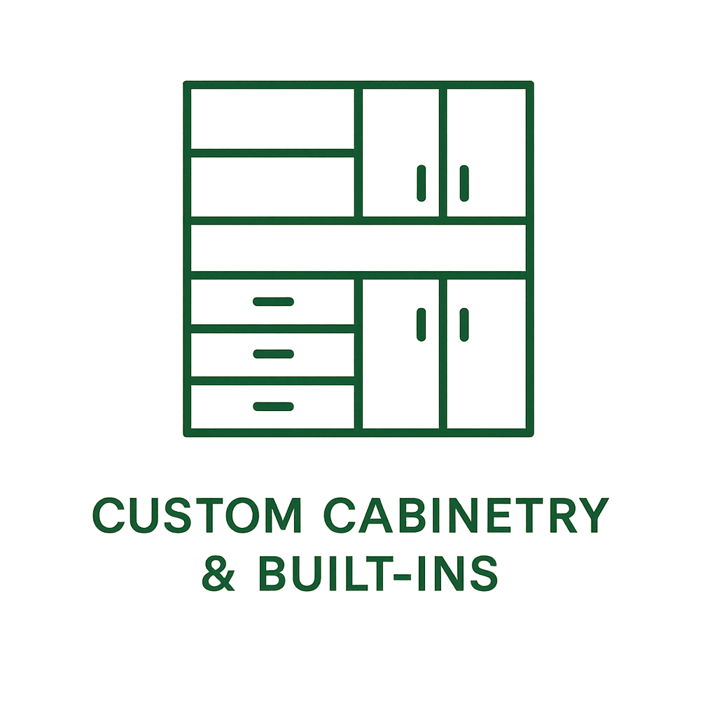 Designed and fabricated in‑house, our cabinetry is the backbone of our renovation work. From mudrooms to media walls, we craft pieces that fit your home perfectly.